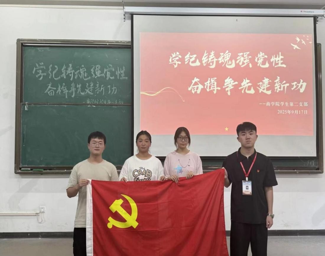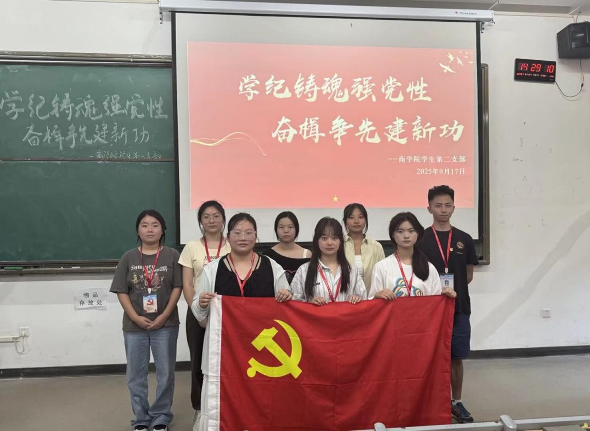 (通讯员:吴珈翊 修稿:高佳丽)为筑牢党员信仰根基,推动笃行实干,共创卓越功绩,2025年9月18日14:30,商学院学生第二支部在教一105开展了以“学纪铸魂强党性,奋楫争先建新功”为主题的9月党小组会。本次会议由王启涵同学主持,商学院学生第二支部全体成员共同参与。