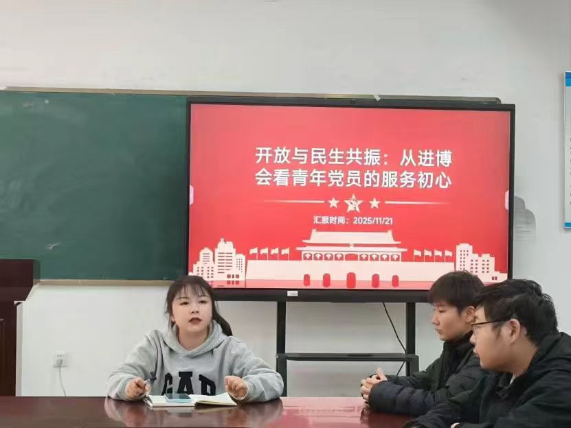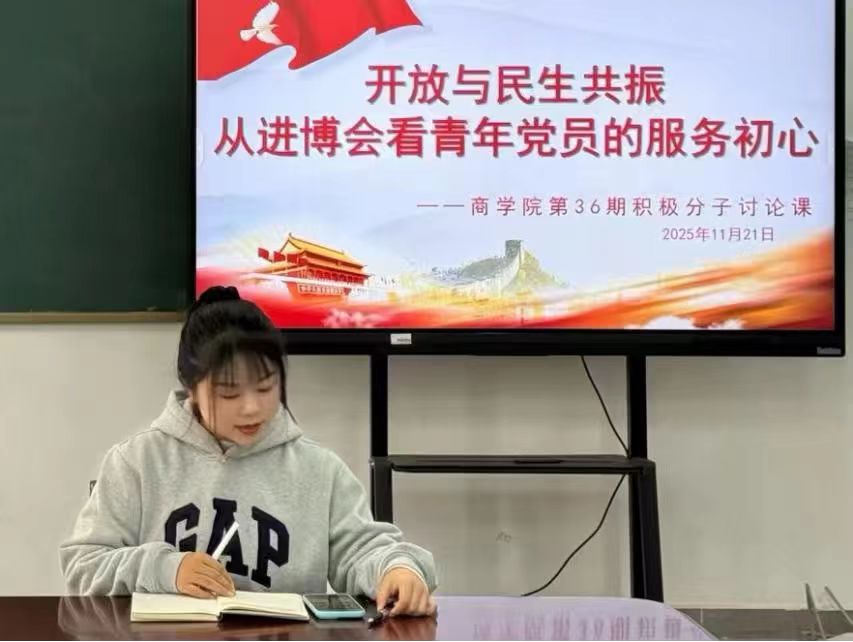 (通讯员:吴珈翊 修稿:高佳丽)为进一步加强第36期入党积极分子队伍建设,引导青年学子从进博会的开放实践中感悟惠民初心、厚植服务情怀,2025年11月21日12:20,商学院学生第二支部在综二202开展了以“开放与民生共振:从进博会看青年党员的服务初心”为主题的第36期积极分子讨论课。本次讨论课由商学院学生第二支部书记毛前平同志主持,商学院第36期入党积极分子参与。