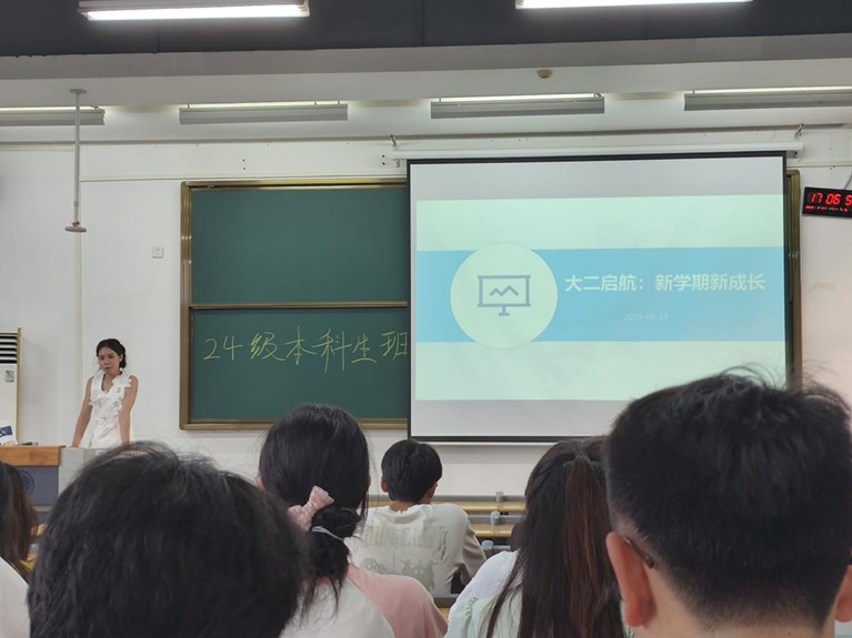 一、老师送上新学期寄语,指出大二是专业深耕关键阶段,要褪去青涩、成熟投入学习,探索专业兴趣与方向;作为承上启下年级,需平衡基础课与专业课衔接,主动参与实践,培养独立思考和解决问题能力;鼓励跳出舒适区,通过竞赛、社团或跨学科学习拓宽视野,实现“知识积累”到“能力输出”的转化。