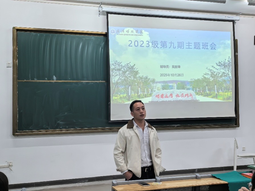 商学院本科23级的同学们于2025年10月26日17时30分在教一106召开本学期第九期主题班会。本次班会由辅导员吴胜锋老师主持。