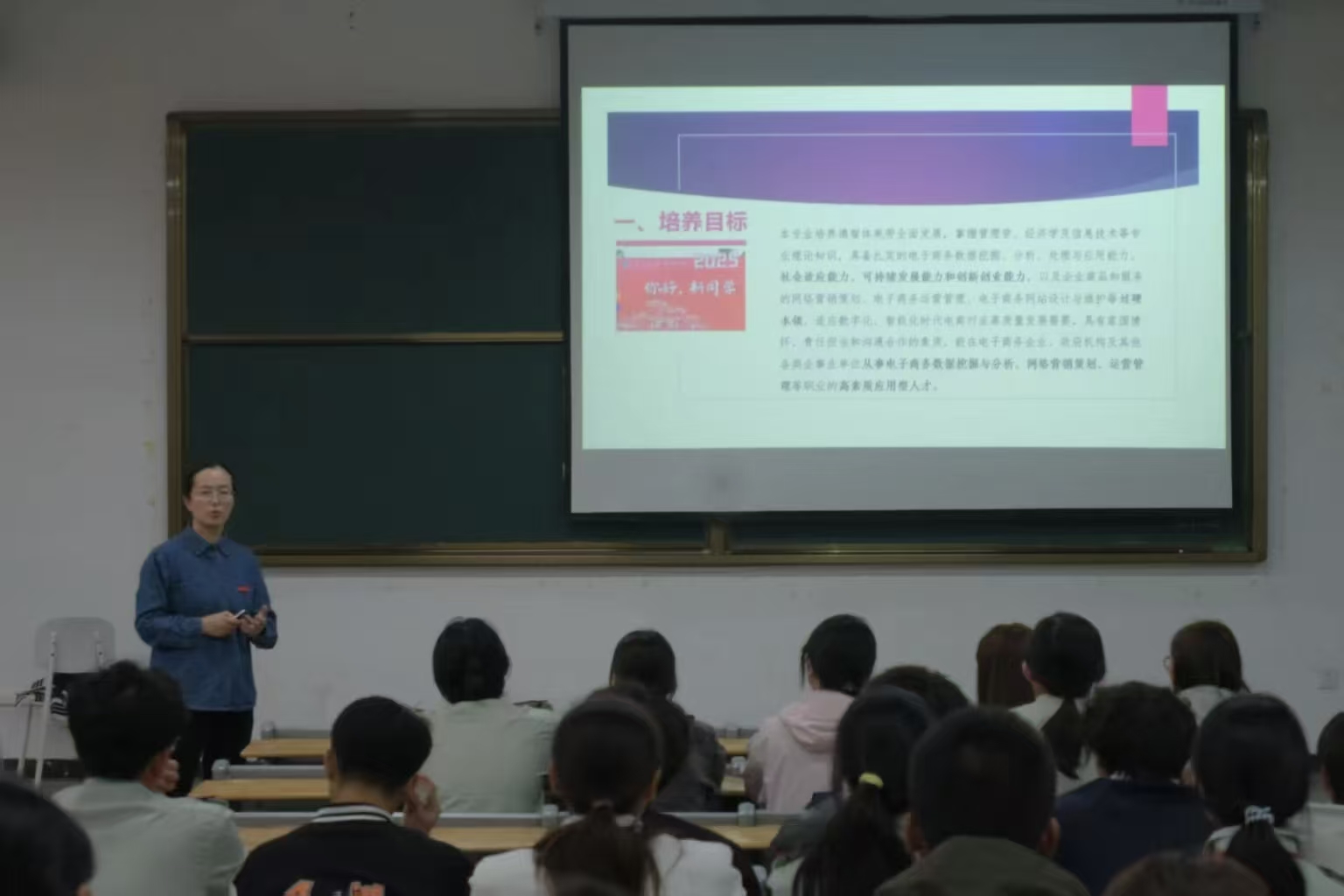 当2025级新生在教一各教室有序落座,主讲老师也随即宣布本次专业介绍会正式拉开帷幕。姚春荣老师首先为电子商务专业的新生介绍了专业课程体系。随后,她给同学们讲解了商学院关于电子商务专业的培养方案,阐释了专业课程如何精准契合武汉晴川学院“应用型人才”培养定位,并为学生们勾勒出了清晰的专业学习蓝图。