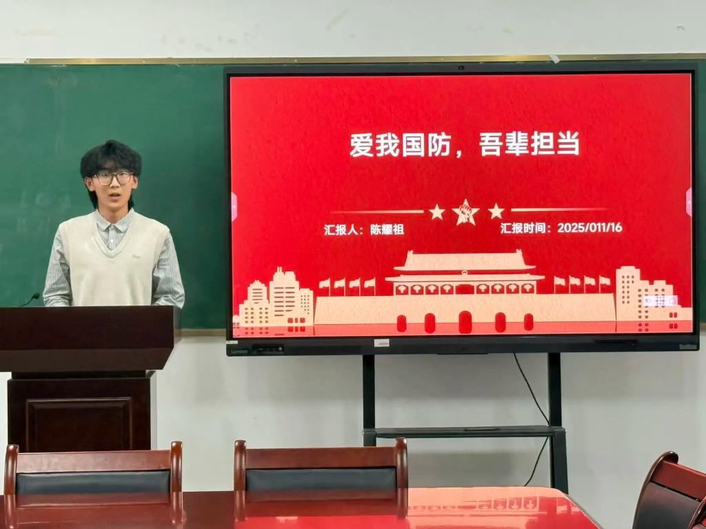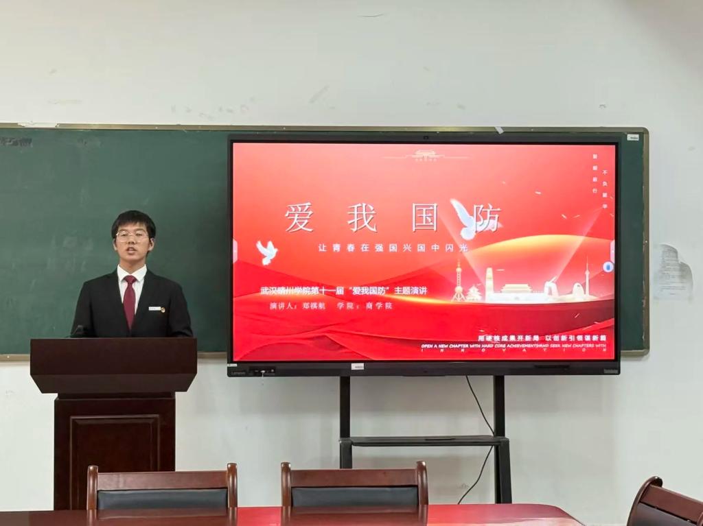 (通讯员:郑祺航)为深入贯彻习近平强军思想,增强青年学生国防观念和爱国情怀,武汉晴川学院商学院于2025年11月16日在综二105会议室举办"爱我国防"主题演讲比赛。商学院团总支书记赵宇明老师以及商学院全体辅导员作为评委参与评分。