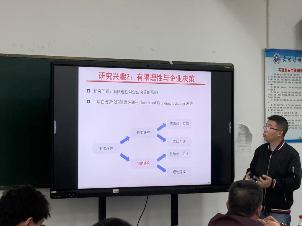 为营造浓厚学术氛围,提升师生科研素养与创新能力,近日,武汉晴川学院商学院成功举办“名家讲坛”系列学术活动。本次活动特邀武汉大学邹镇涛副教授莅临我院,在综2-202学院会议室作了一场精彩的学术报告。商学院全体青年教师到场聆听,现场座无虚席,学术交流气氛热烈。