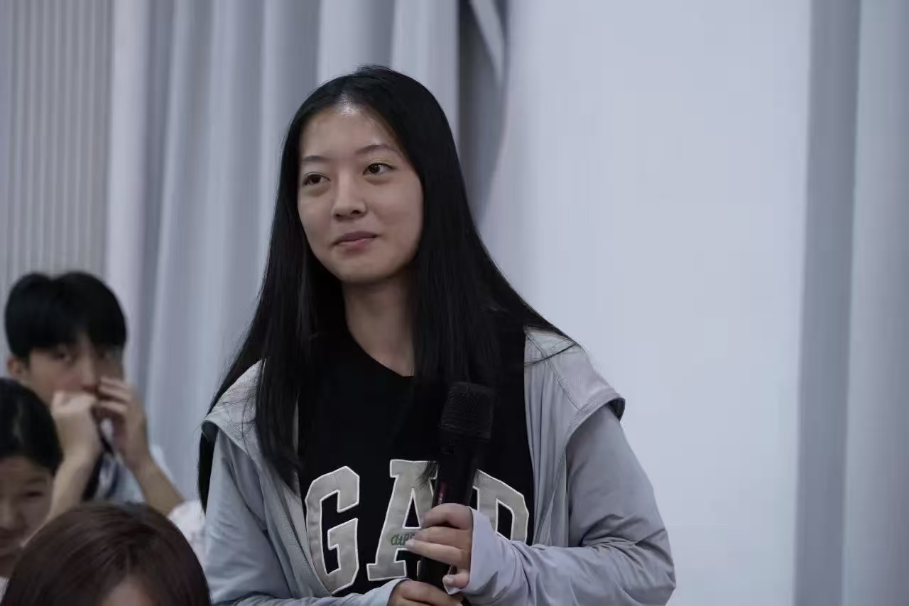 接着,老生代表许兴宇以“课堂扎根、服务锤炼、实践拓界”为脉络展开分享:课堂上,她保持专业课稳居专业前20%、综测连续两年第一的成绩,凭扎实基础斩获6项国家级、8项省级学科竞赛奖项;服务中,她作为班级组织委员牵头学业帮扶小组,任就业俱乐部会长时对接10余家企业、组织3场校园招聘会;实践里,她连续三年参与暑期社会实践,将国际贸易专业知识用于乡村农产品外销策划。最后,她鼓励新生:“别怕试错,像抓住班委选举、学生会招新这样的机会去锻炼,但记得专业知识是根本,要提前规划时间、跟上课堂节奏。”