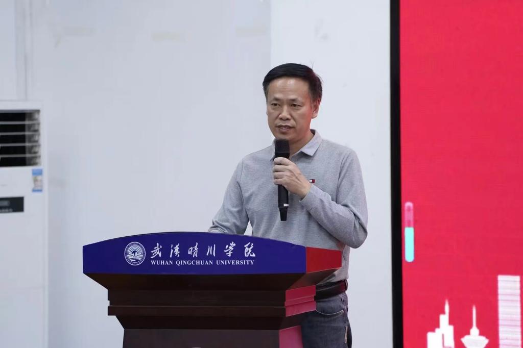 紧接着,商院荣誉院长何国华教授,从更长远的视角给新生们指引方向。何国华教授结合自身多年商科教育与研究经验,以“商科学习的价值与成长”为核心展开讲话。他从湖北省“51020现代产业体系”对商科人才的需求切入,告诉新生“物流、电商、国贸等专业,都是对接产业发展的‘刚需领域’”;同时,他还分享自己带过的毕业生案例——有物流专业学生从企业仓储专员成长为供应链经理,有国贸专业学生依托跨境电商创业实现年营收超百万,以此说明“商院的专业学习与行业需求紧密衔接,只要扎实积累,就能找到自己的发展赛道”。最后他鼓励新生:“在商院不仅要学知识,更要培养‘用商业思维解决问题’的能力,多和老师交流、多参与实践,慢慢找到自己的职业方向。”