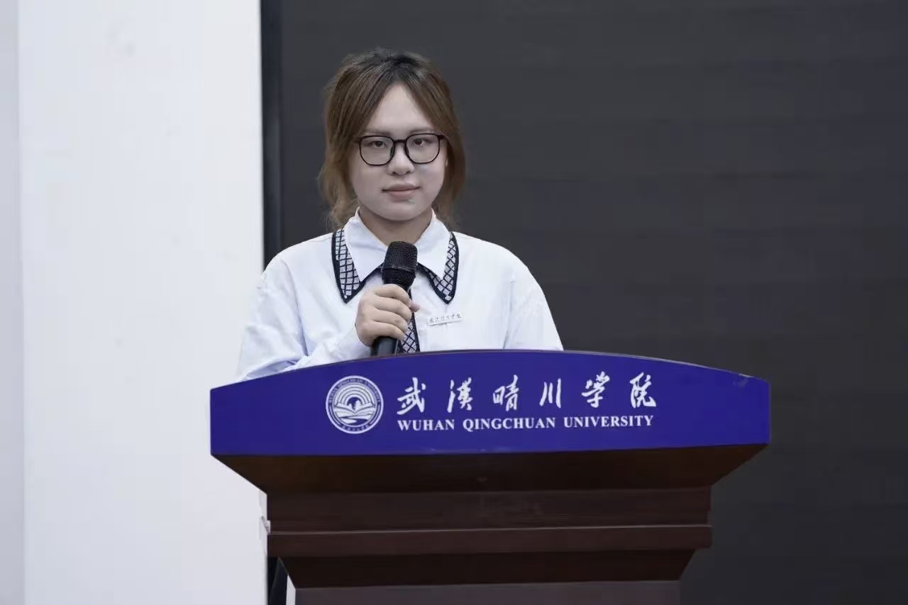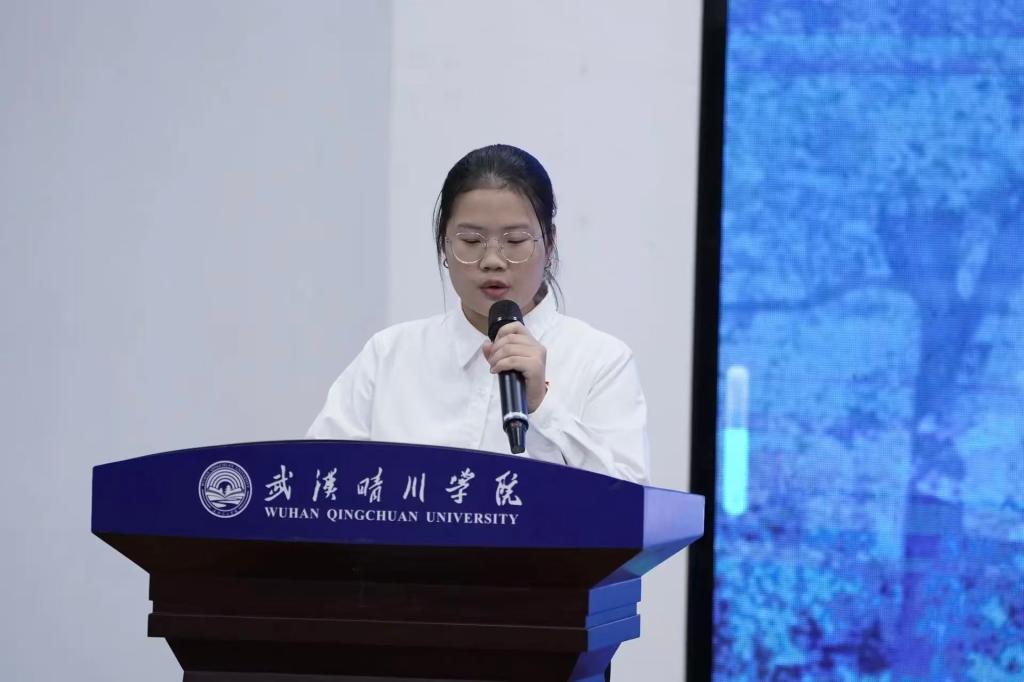 在许兴宇同学分享后,2025级物流管理专业的郭天滢同学代表新生发言。郭天滢结合入学以来的真切感受展开讲话,她提到初入校园时,学长学姐递来的校园指引手册、辅导员耐心解答报到疑问的场景,让“明体达用、抱璞开新”的校训从石碑上的文字,变成了触手可及的校园温度。谈及对物流管理专业的认知,她也分享了自己的转变。最后,她代表全体新生承诺:未来会做“勤学的赶路人”,认真听好每一堂专业课、做好每一次作业;做“笃行的实践者”,主动报名学科竞赛、争取企业实习机会;做“向上的追光者”,遇到学习难题不退缩、取得小进步不骄傲,和所有新生一起在商院慢慢扎根、努力成长。