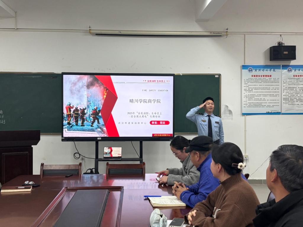 为切实增强全院教职工的消防安全意识,提升消防安全应急处置能力,筑牢校园安全防线,武汉晴川学院商学院于2025年11月26日下午,在综合楼2-202成功举办了一场主题鲜明、内容详实的消防安全知识讲座。本次讲座特邀武汉市进安消防中心程教官主讲,学院全体教职工参加了学习。
